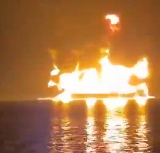 Snimka koju je snimila posada jednog obližnjeg broda prikazuje oba tankera okružena velikom površinom zapaljene nafte koja se širila po moru, piše The Maritime Executive.