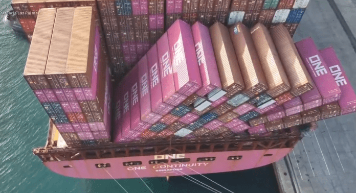 Kontejnerski brod ONE Continuity, pod singapurskom zastavom i u vlasništvu Seaspena, izgubio je oko 45 praznih kontejnera nakon što ga je snažno nevrijeme pogodilo južno od Kanarskih otoka. Brod Ocean Network Expressa (ONE), ukrcan s više od 16.000 TEU-a na liniji Le Havre – Singapur, 10. prosinca bio je prisiljen proglasiti izvanredno stanje kada je orkansko nevrijeme ozbiljno narušilo stabilnost tereta na krmenom dijelu, piše Splash247.
