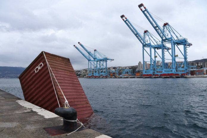 U riječkoj luci zabilježen je incident tijekom jakog udara bure, kada su s operativne obale na Visinovom gatu tri kontejnera pala u more.